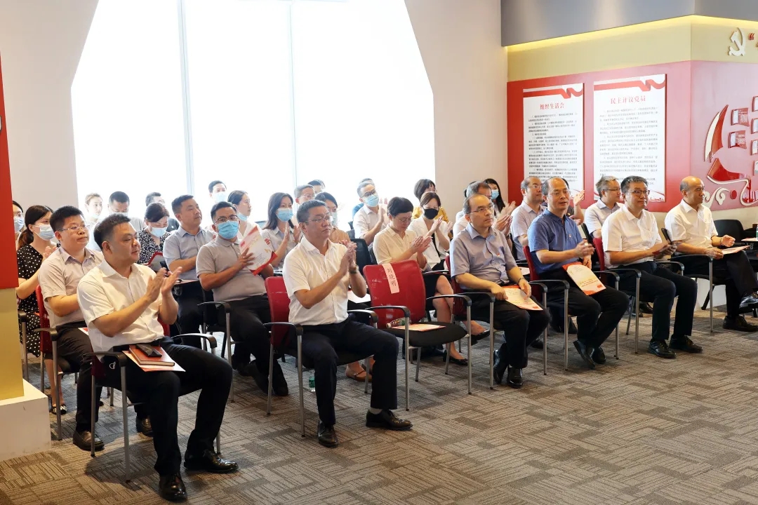 6月8日,“学百年党史,办‘两新’实事”活动在华中地区“最高”的党建阵地——武汉绿地中心党群活动服务中心举行,区委常委、组织部部长胡太荣,区委常委、宣传部部长王兴文出席。