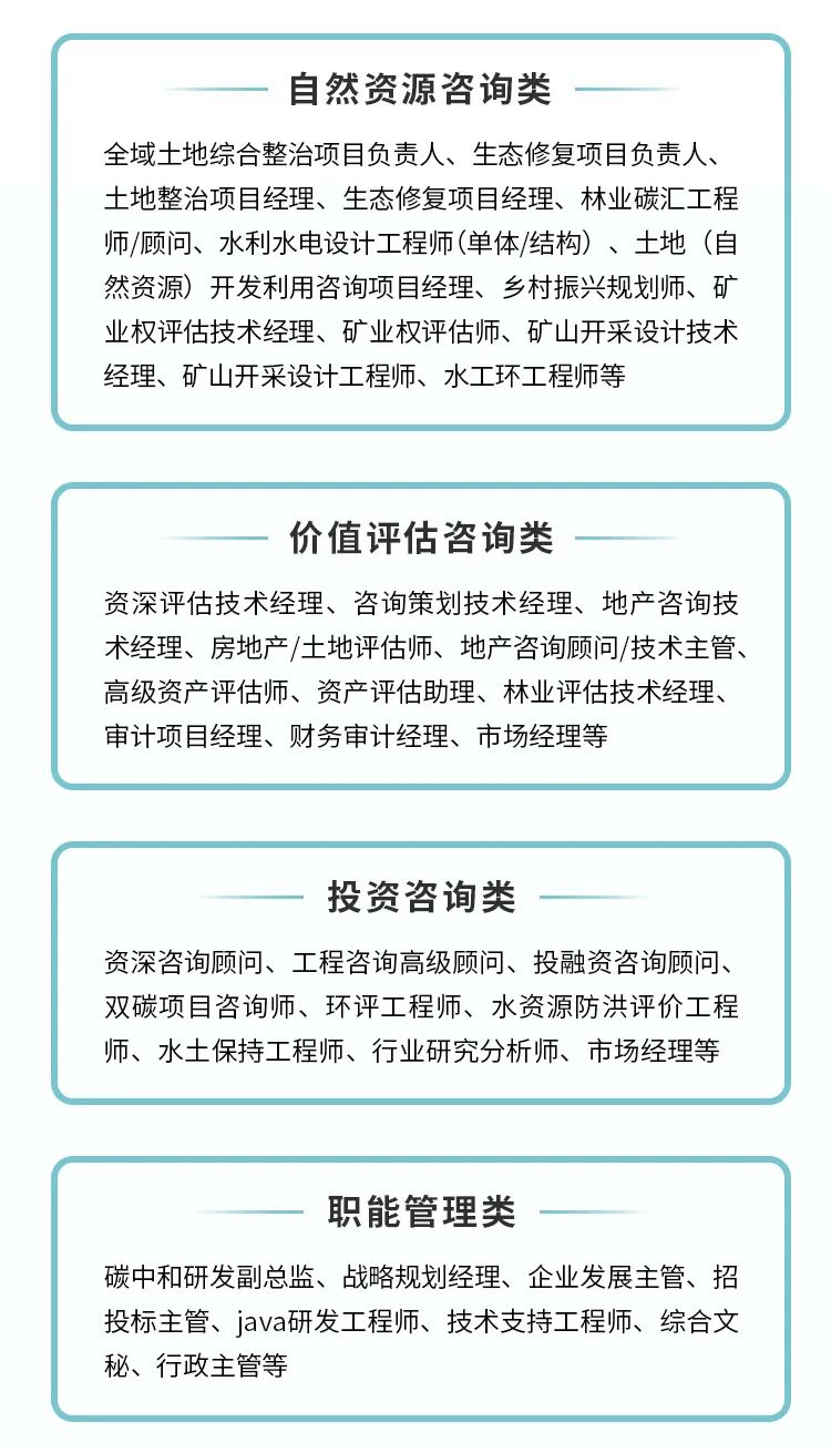 这里有价值评估咨询、自然资源咨询、投资咨询、生态环境咨询等四大业务板块;