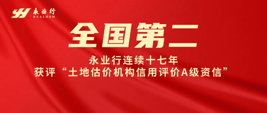 全国第二!永业行连续十七年获评“土地估价机构信用评价A级资信”