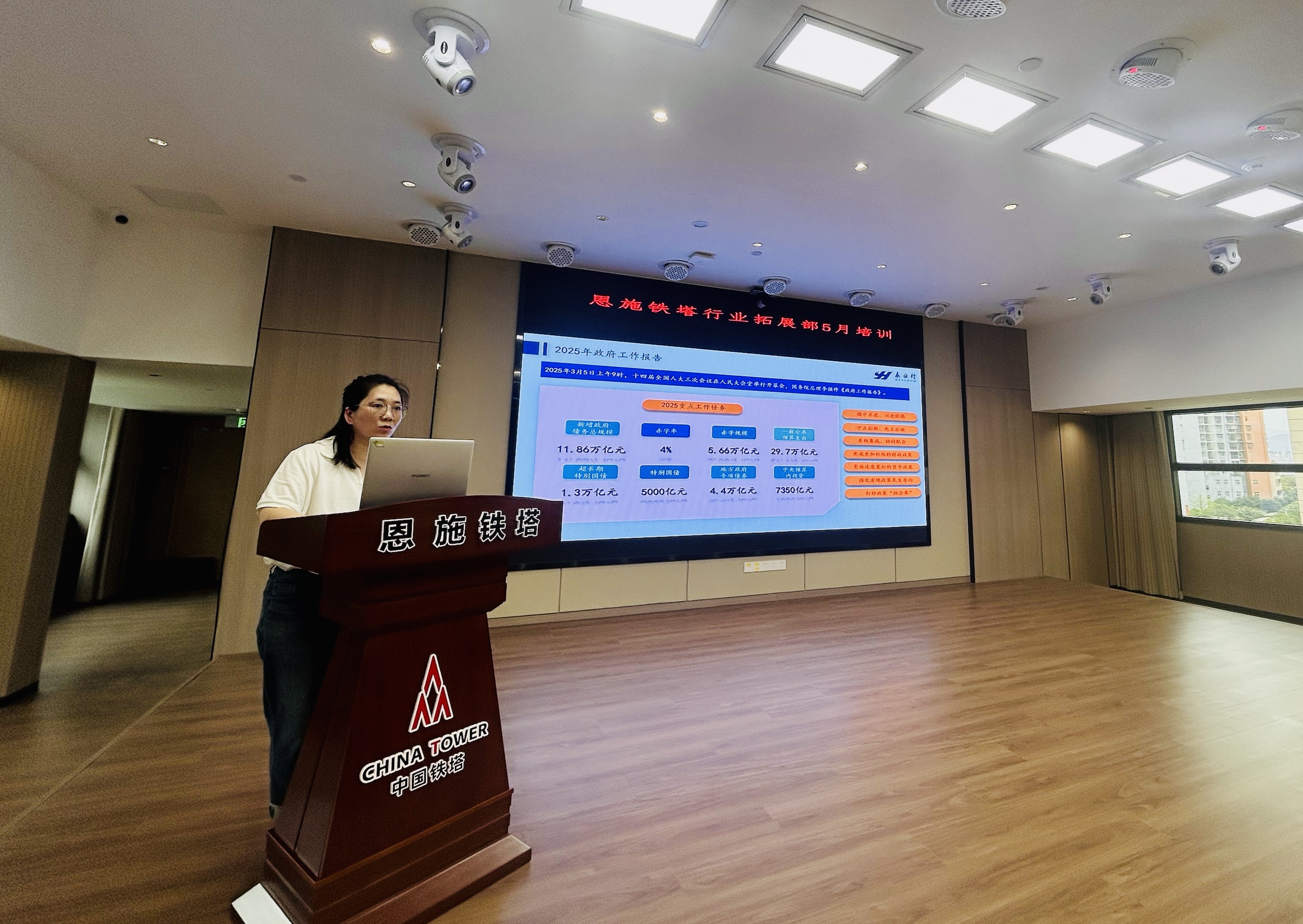 2025年5月16日,中国铁塔股份有限公司恩施州分公司组织开展“恩施铁塔行业拓展部5月培训”。永业行鄂西区技术副总监谭立敏应邀作《新形势下数据领域争资立项谋划实操》专题培训。恩施铁塔公司副总经理刘洋出席会议,业务拓展部经理王毅主持会议。